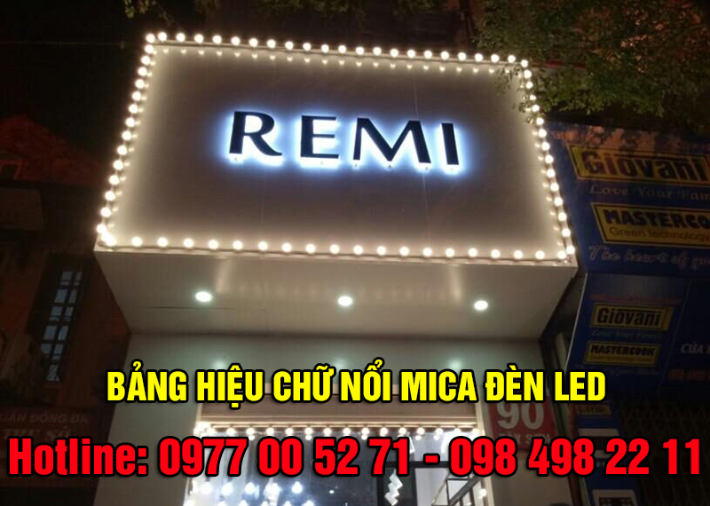 Bảng hiệu chữ nổi mica là loại bảng hiệu sử dụng chữ mica được cắt CNC tạo hiệu ứng nổi 3D, có thể kết hợp đèn LED hắt sáng hoặc gắn trực tiếp lên các bề mặt như alu, tường, kính, inox… giúp bảng hiệu sang trọng – dễ nhận diện – thu hút ánh nhìn.