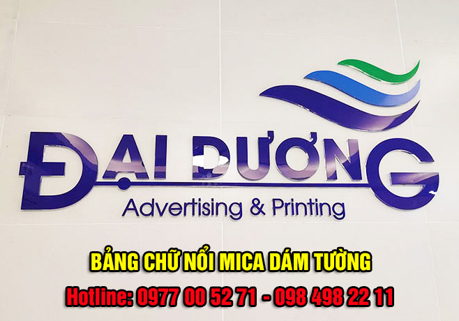 Là dạng logo được thi công trên chất liệu mica có giá thành không quá đắt so với mặt bằng chung. Tại những công ty lớn, hay các quầy lễ tân, logo bằng mica chữ nổi sẽ được đặt một vị trí mà mọi người dễ dàng quan sát.