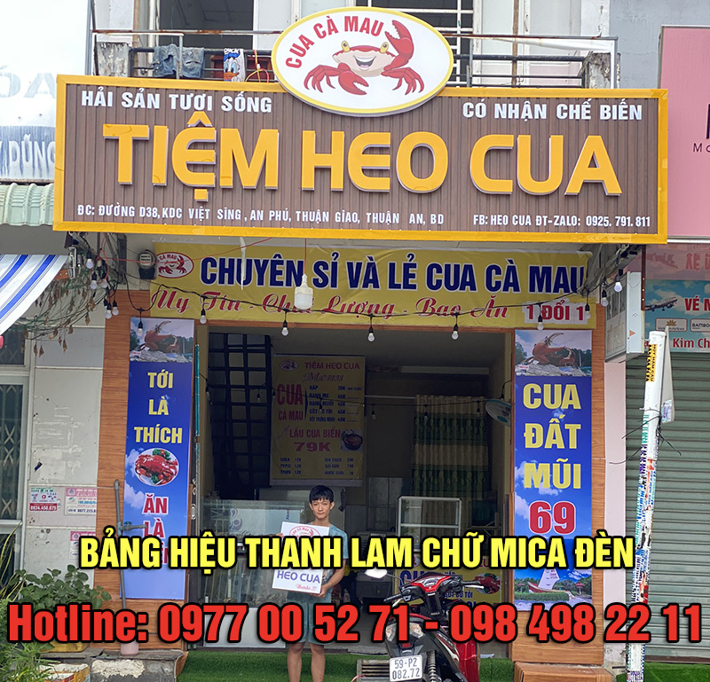 Báo Giá Thi Công Bảng Hiệu Thanh Lam Nhựa Chữ Mica Đèn LED