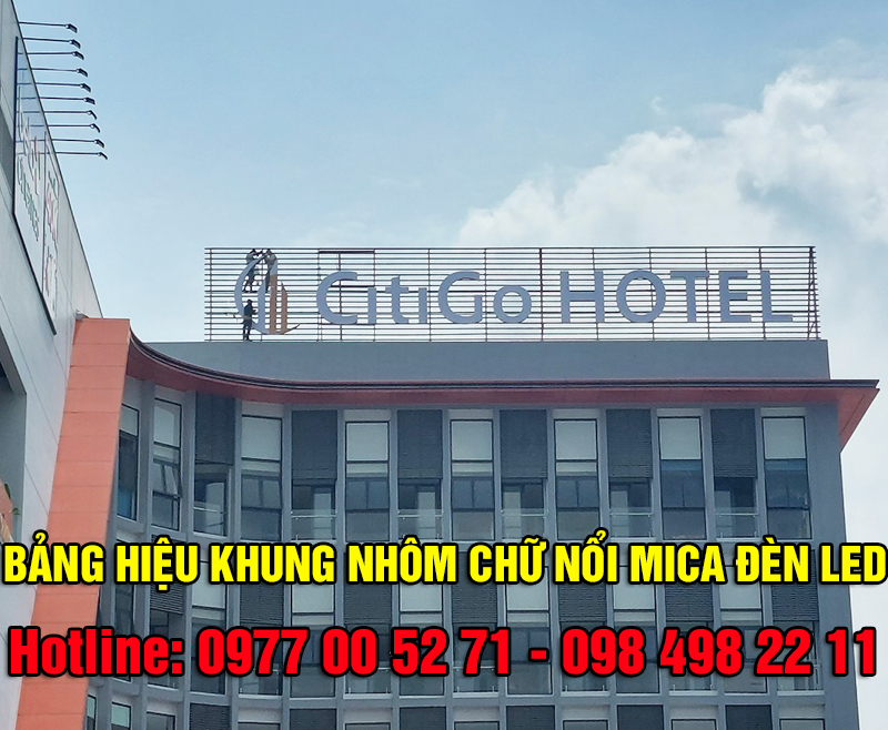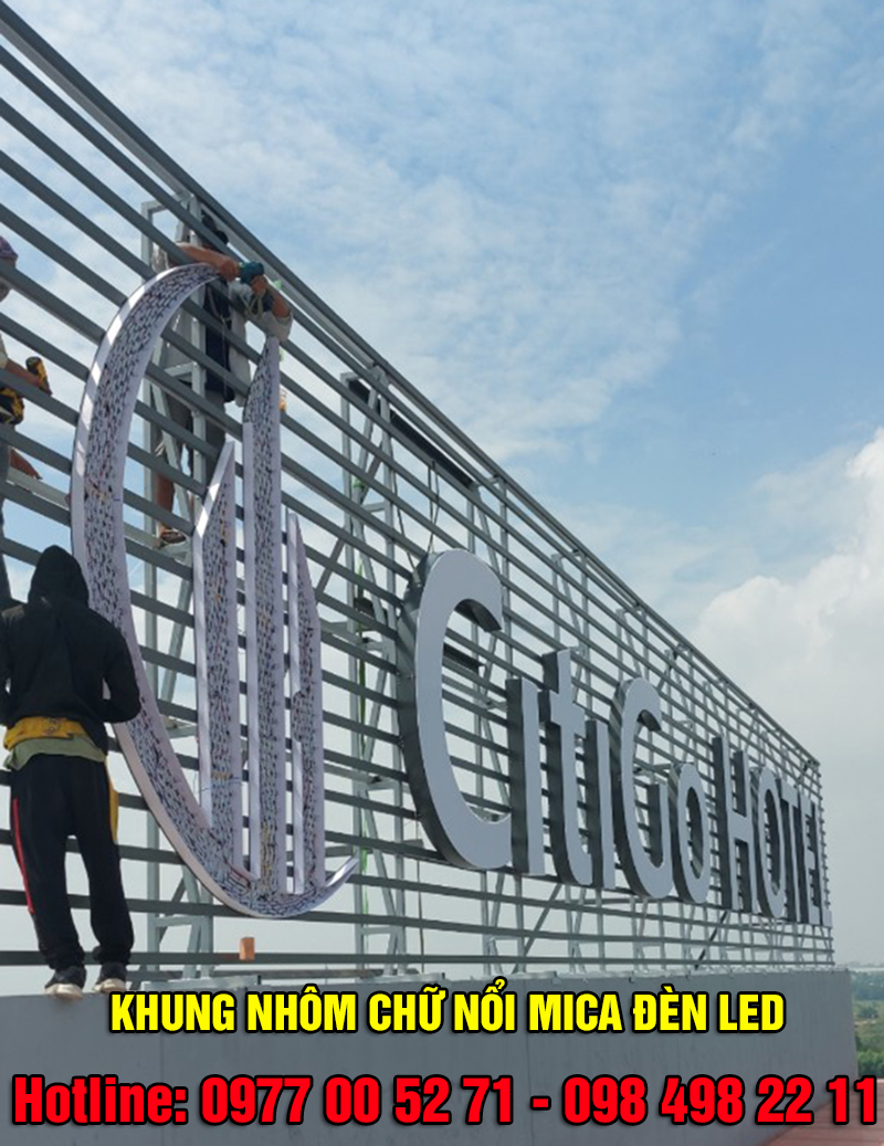 Chữ nổi quảng cáo đèn led có kích thước lớn được gắn trên hệ khung nhôm vững chắc và đặt cố định lên nóc tòa nhà, độ bền của biển cao chịu được khắc nghiệt của thời tiết mà không bị phai màu.