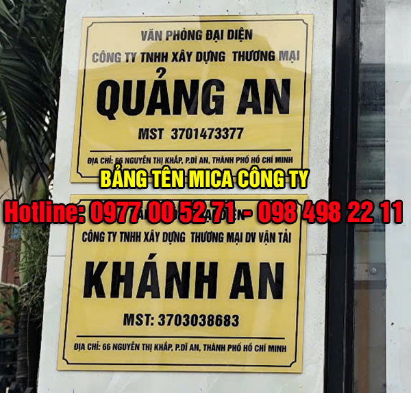 Các mẫu bảng mica công ty phổ biến tại Quảng Cáo Bình Dương