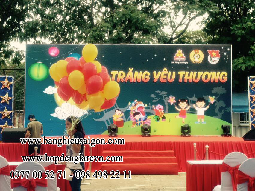 Khung backdrop: in hiflex, bắn khung sắt, thi công lắp đặt tận nơi.