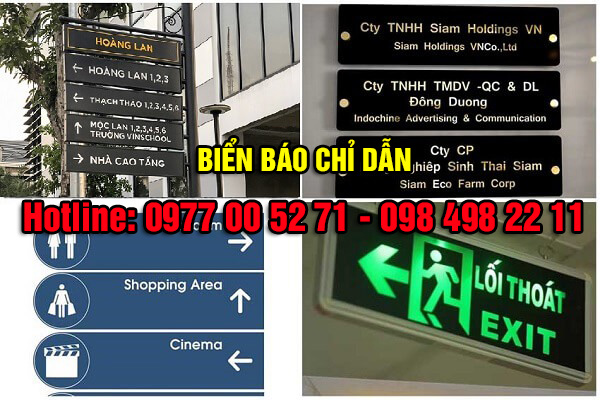 Biển chỉ dẫn là những tấm bảng được treo trên tường hoặc có giá đỡ, trụ đứng với mục đích hướng dẫn hướng đi chính xác cho mọi người. Sản phẩm này rất đa dạng từ cấu tạo, chất liệu, kích thước, đến màu sắc đến vị trí lắp đặt của sản phẩm.