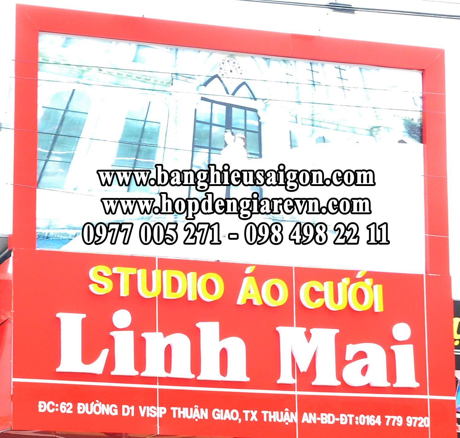 Khi nắm trong tay cho mình một bảng hiệu quảng cáo đẹp, ấn tượng bạn sẽ thu hút được vô vàn ánh mắt của nhiều cặp đôi đang có nhu cầu làm đám cưới. Sao nào, bạn đã biết tầm quan trọng của việc thiết kế ra một bang hieu quang cao chat luong chưa. Đối với công ty chúng tôi thì các sản phẩm bang hieu quang cao gia re, hop den quang cao chat luong, bang ron quang cao dep là nhũng tiêu chí hàng đầu, chúng tôi dám tự tin sản phẩm của mình cung cấp sẽ đem lại sự hài lòng tuyệt đối của quý khách. Bởi lẽ, nhũng sản phẩm này được chúng tôi gia công vô cùng tỉ mỉ và có sự cân đối hài hòa giũa các nguyên vật liệu được nhập khẩu từ nhiều quốc gia trong khu vực. Cùng với đó là một đội ngũ nhân viên dày dặn kinh nghiệm sẽ cung cấp sản phẩm bang hieu studio ao cuoi dep nhất cho quý khách.