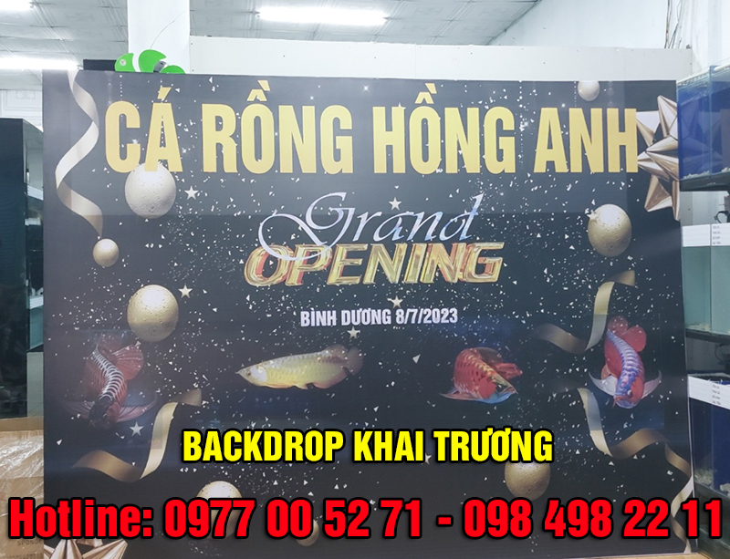 Khách hàng có nhu cầu in backdrop khai trương khổ nhỏ, in background khai trương khổ lớn, có thể liên hệ với chúng tôi qua Hotline: 0977 00 52 71 - 098 498 22 11