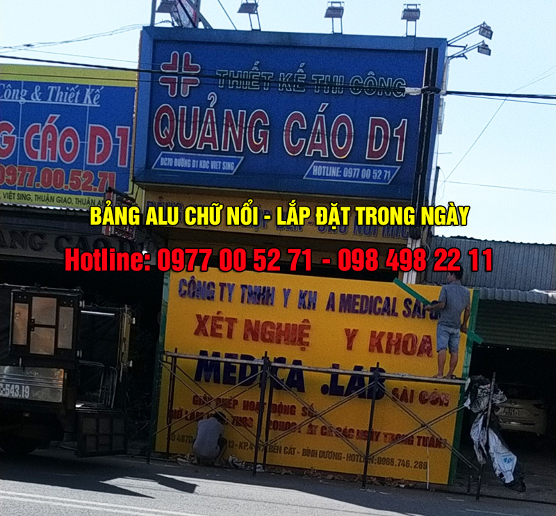 Công ty Quảng Cáo Bình Dương chuyên thi công bảng hiệu alu chữ nổi tại Bình Dương. Chúng tôi thực hiện sản xuất các loại bảng hiệu hiflex, bảng hiệu alu chữ nổi, bảng hiệu led, hộp đèn các loại với chất lượng và chi phí tốt nhất.