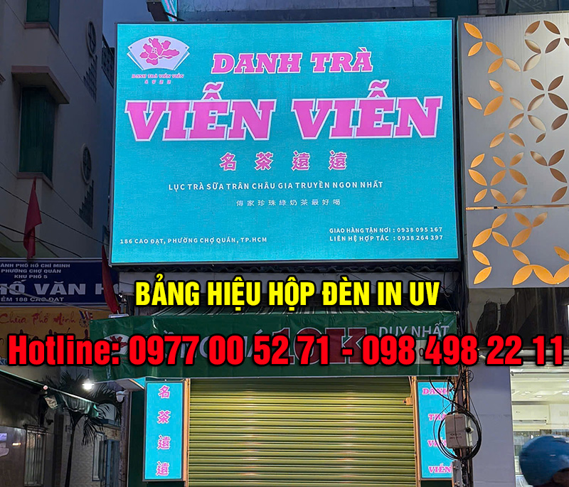 Bảng hiệu hộp đèn in UV là loại bảng hiệu sử dụng công nghệ in UV trực tiếp lên bề mặt vật liệu như mica, bạt Hiflex, hoặc alu. Sau đó, bảng được lắp hệ thống đèn LED bên trong để tạo hiệu ứng chiếu sáng nổi bật.