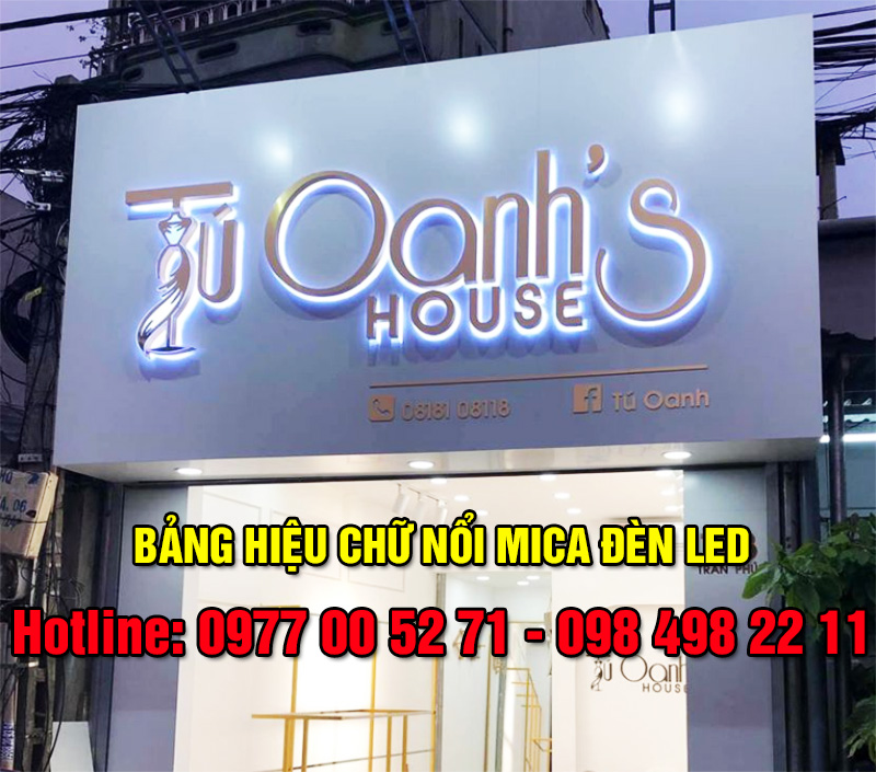 - Biển mặt Mica có gắn chữ nổi và đèn led sáng vào ban đêm